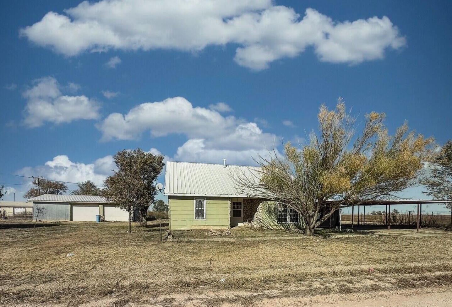 Come home to Silverton, TX! This home has a Country feel with city amenities and includes 3 bedrooms, 2 baths and even has an indoor cellar. The home is sitting on 2.6 acres and has a metal roof. There is a nice double car carport out front and a double-sided shop on the side. Nice front yard and the acreage is fenced in the back. Come see this one for yourself!